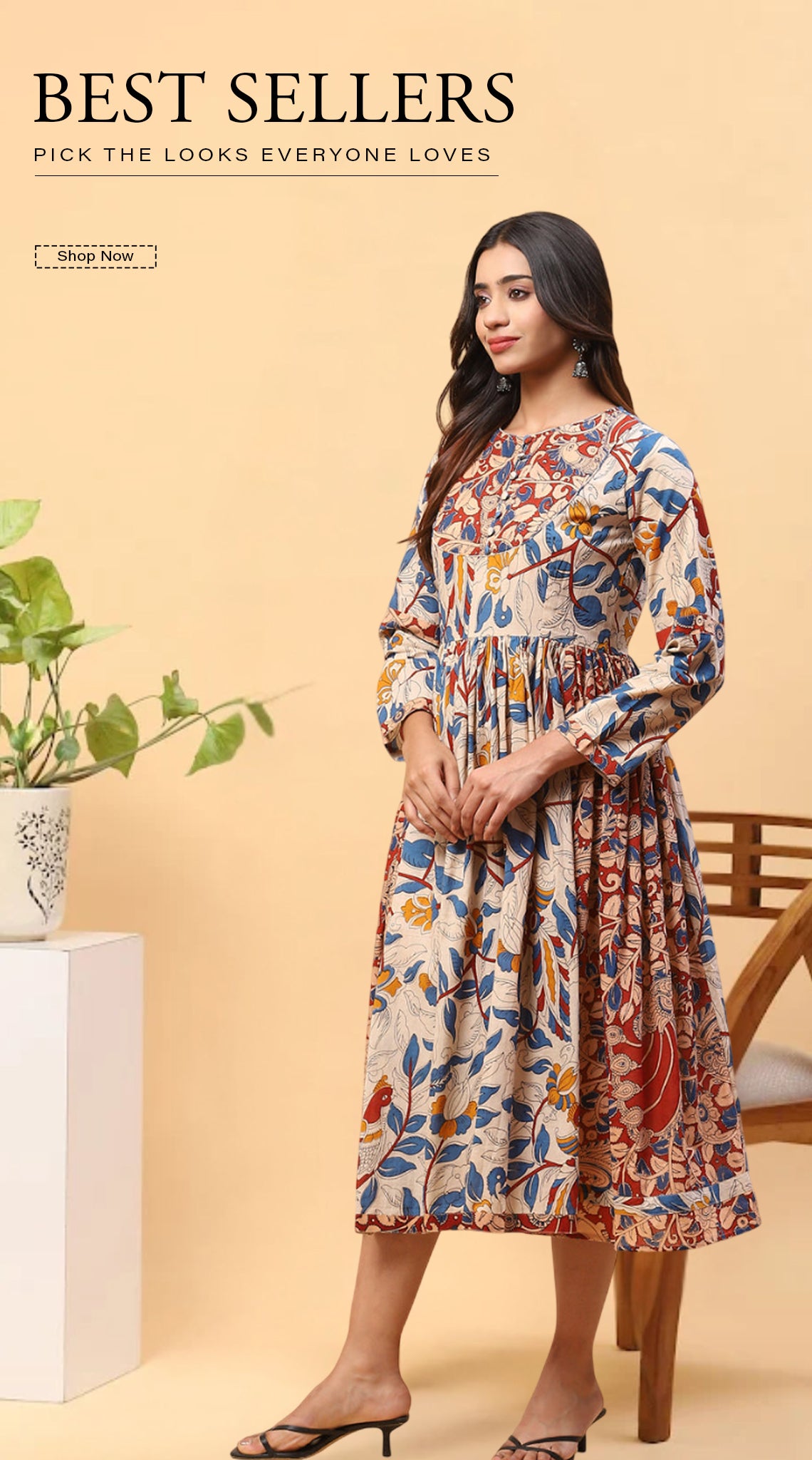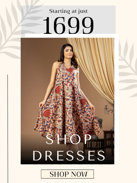 Celebrated for its hand-painted detailed motifs and vibrant patterns, Kalamkari is a traditional art form producing exclusive, heirloom-worthy fabrics for cherished occasions.