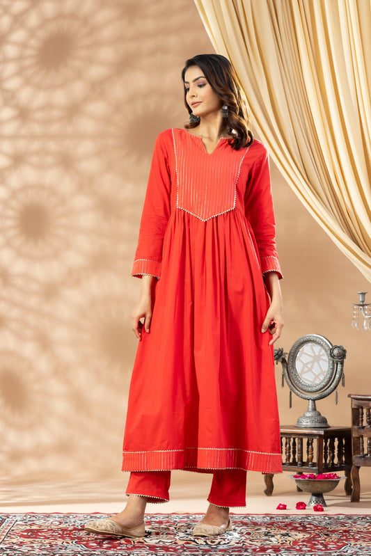 Harsingaar Candy Red Silk Gathered Kurta Set