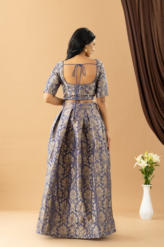 Bahaar Ink Blue Jacquard Skirt Blouse Dupatta Set