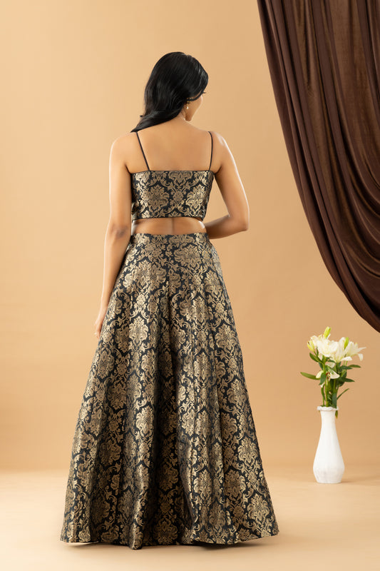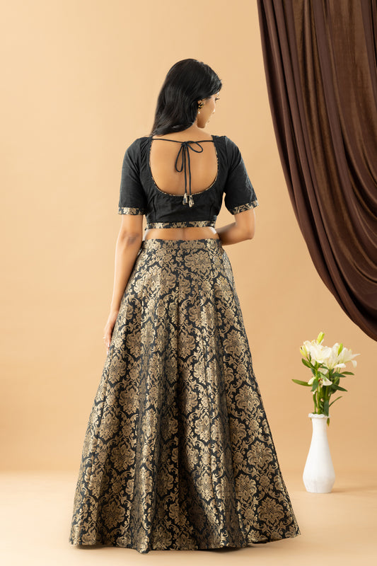 Bahaar Black Jacquard Raw Silk Blouse Skirt Set
