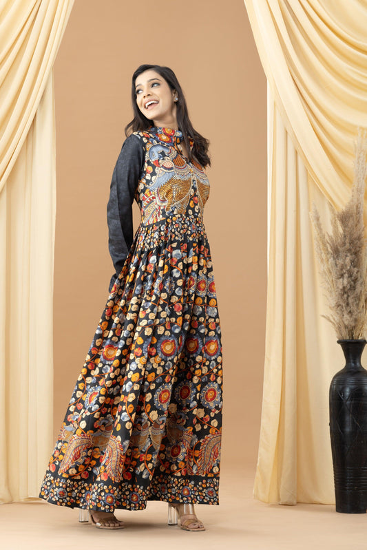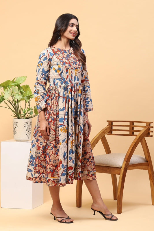 Aseel Multicolor Cotton Silk Kalamkari Dress