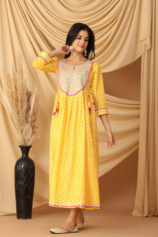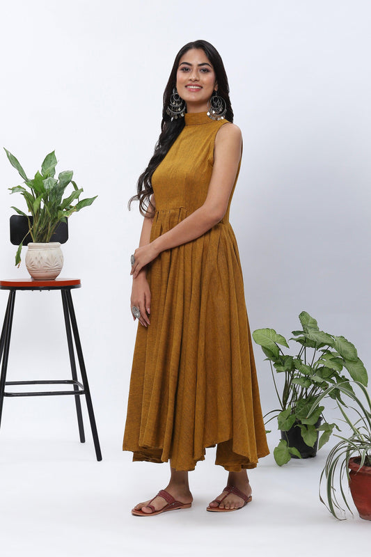 Sanchi Black Yellow Kalamkari Block-printed Dress