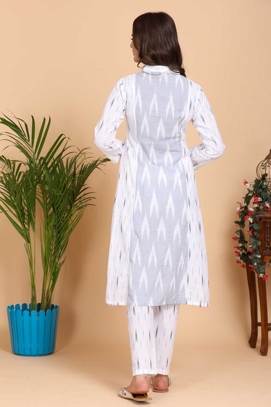 Sale 61%Aseel Ikkat Grey and White Kurta Set