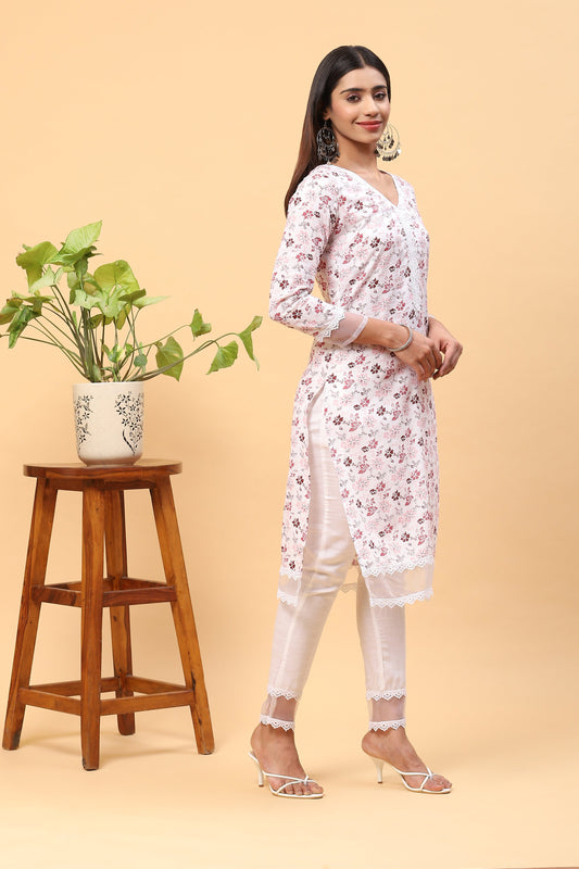 Pihu Daisy White Floral Print Kurta with Tulip Pants
