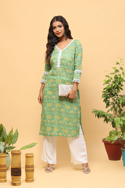 Sale 50%Pihu Tea Green Floral Kurta Set