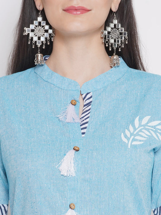 Pihu Baby Blue Collared Kurta with Tulip Pants