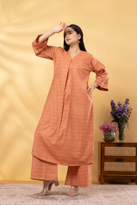 Sale 48%Saadgi Peach Pie V-Neck Kurta Set
