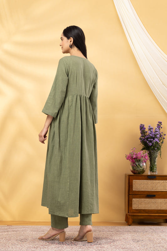 Sale 42%Saadgi Sage Green Gathered Kurta Set