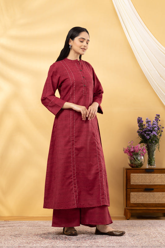 Utsaah Wine Woolen Aari Embroidery Kurta Set