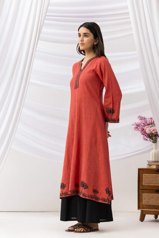 Saadgi Cherry Red Jamdani A-line Kurta Set