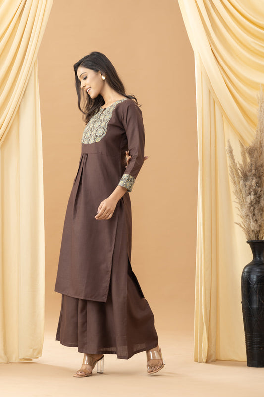 Harsingaar Truffle Ajrakh Patch Kurta Set