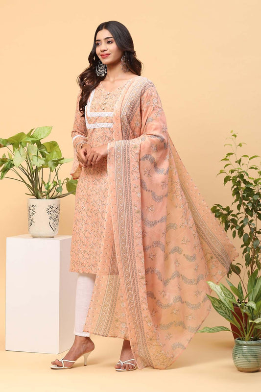 Pihu Coral Peach Digital Print Kurta Set