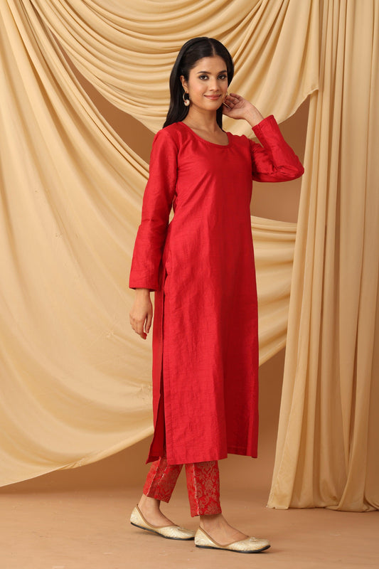 Sale 50%Sanchi Red Silk & Brocade Kurta Set