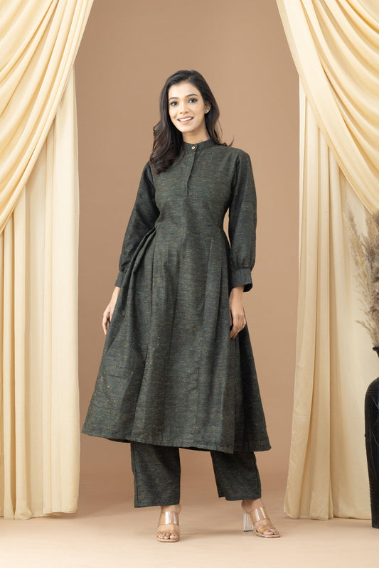 Sold outAseel Black Olive Khadi Kurta Set