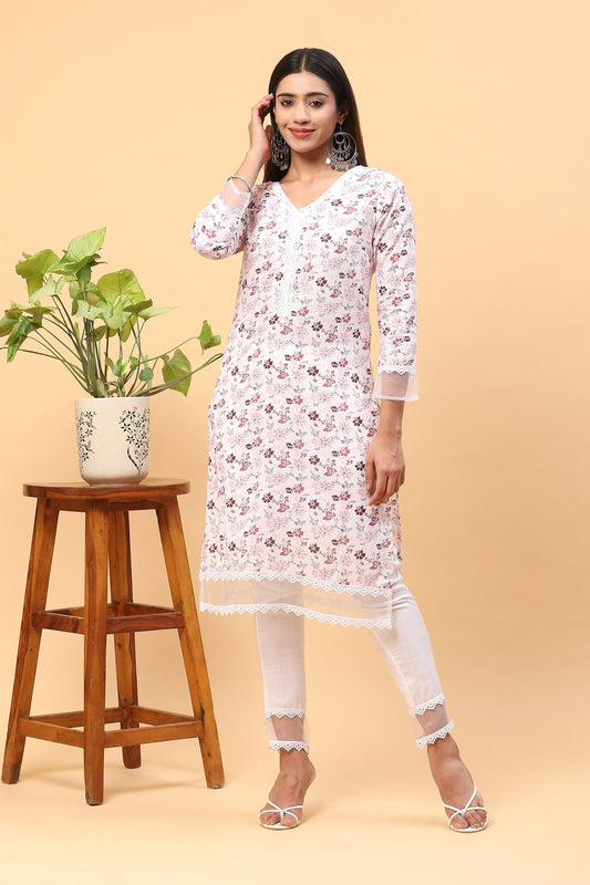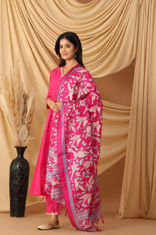 Pihu Fuschia Lace Kurta Set with Printed Dupatta