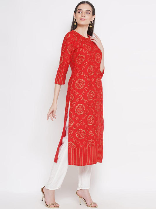 Sale 50%Riwaaz Coral Red Bandhani Kurta Set