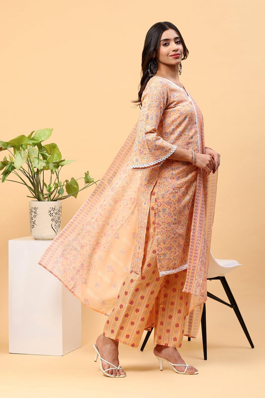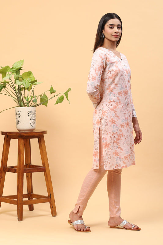 Sale 50%Pihu Crayola Peach Floral Kurta Set