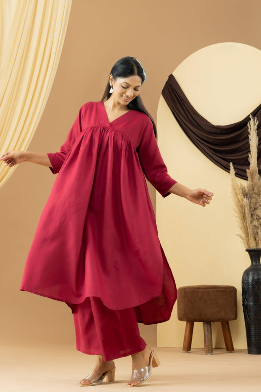 Utsaah Brunt Maroon and Black Angrakha Kurta Set