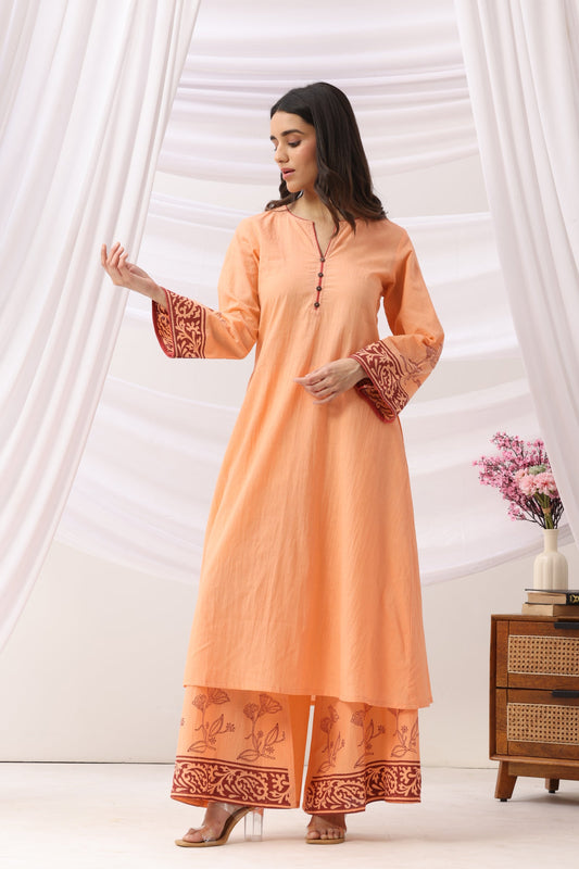 Mridu Coral Peach Kurta Set