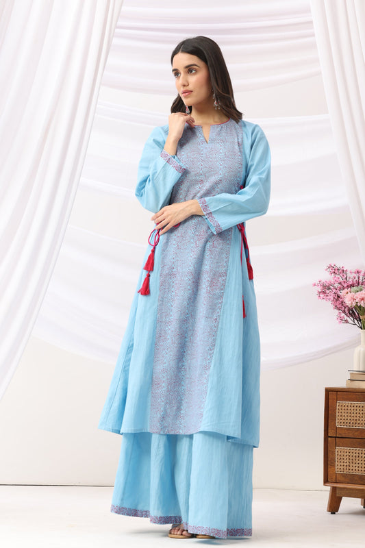 Mridu Blue Side Dori Kurta With Skirt Set