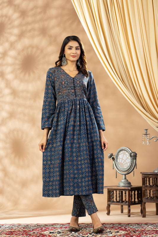Sale 45%Umang Indigo Ajrakh Kurta Set