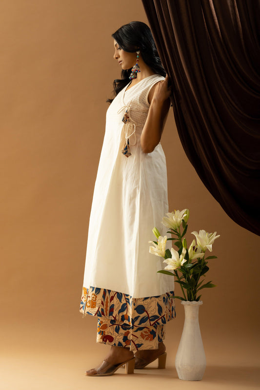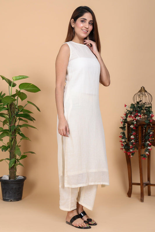Sale 45%Aseel Off-White Sleeveless Kota set