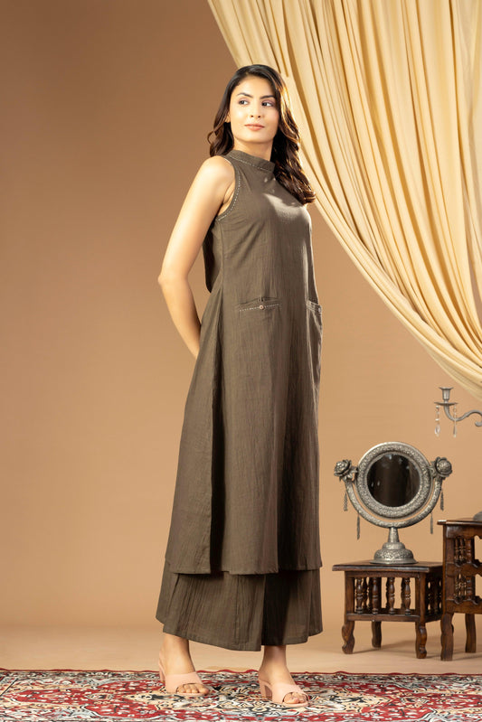 Umang Bronze And Grey Asymmetrical Kurta Set