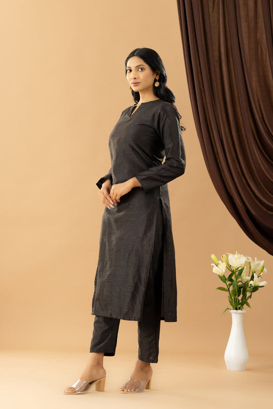 Sale 45%Bahaar Black Raw Silk Kurta Set