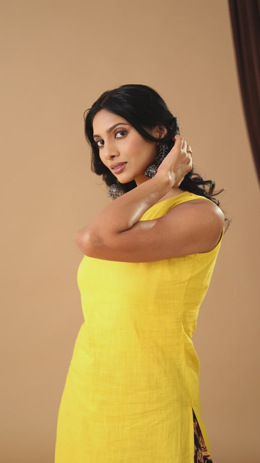 Bahaar Golden Yellow Black Kalamkari Kurta Set