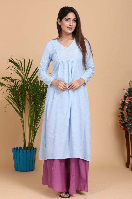 Sale 45%Aseel Blue Kurta with Mauve palazzo