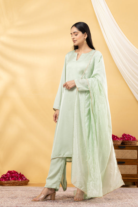 Saadgi Fern Green Asymmetrical Suit Set