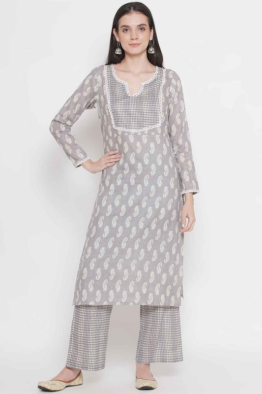 Sold outRiwaaz Light Grey Paisley Kurta Set