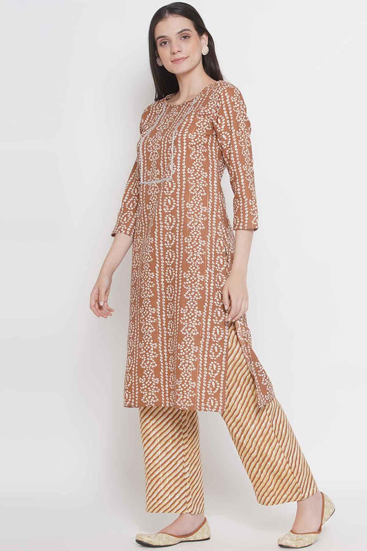 Riwaaz Cinnamon Bandhani Print Kurta Set
