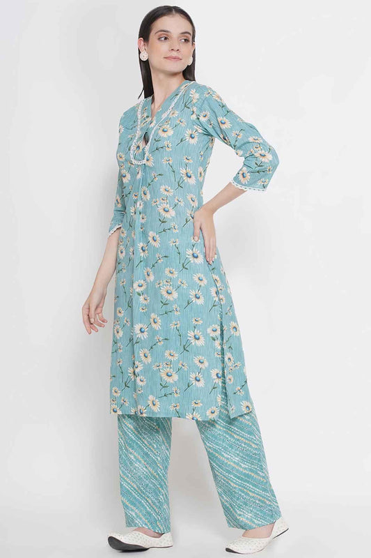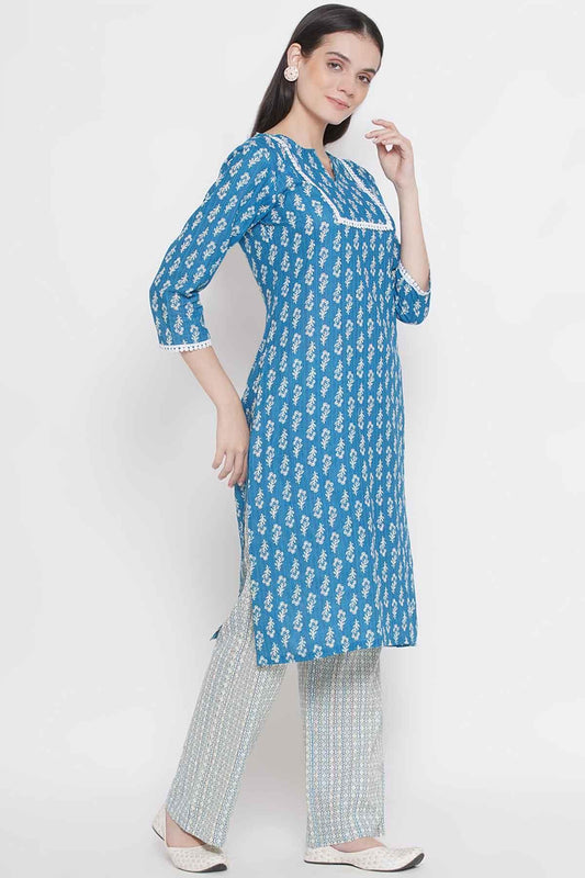 Riwaaz Turquoise Blue Kurta Set with Lace Details