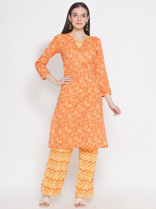 Riwaaz Radiant Orange Floral Kurta Set