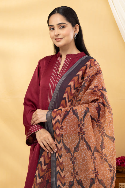 Sale 42%Saadgi Deep Crimson Kalidar Suit Set