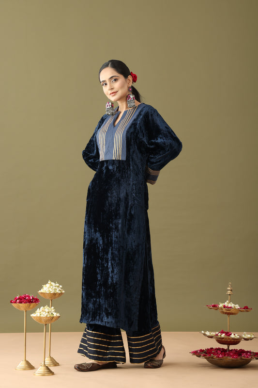 Sale 45%Utsaah Blue Velvet Gotta Kurta Set