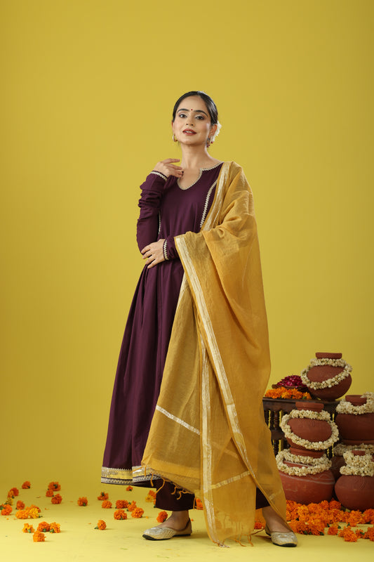 Utsaah Brunt Maroon and Black Angrakha Kurta Set