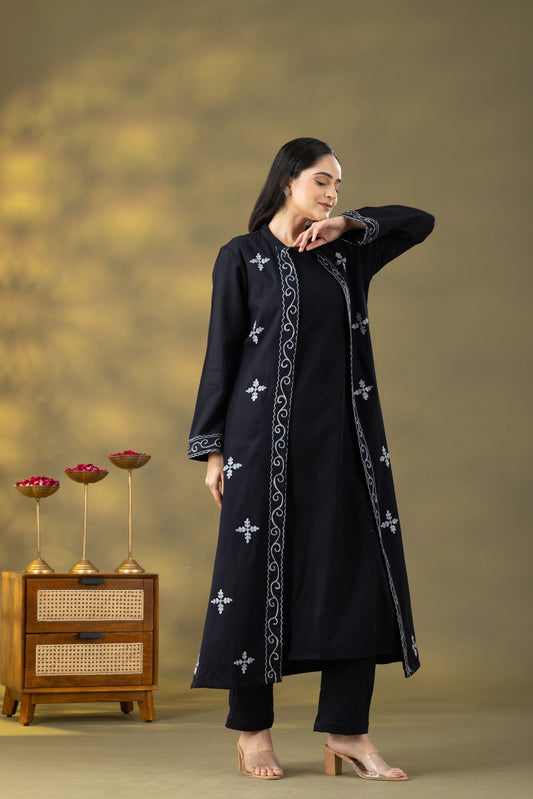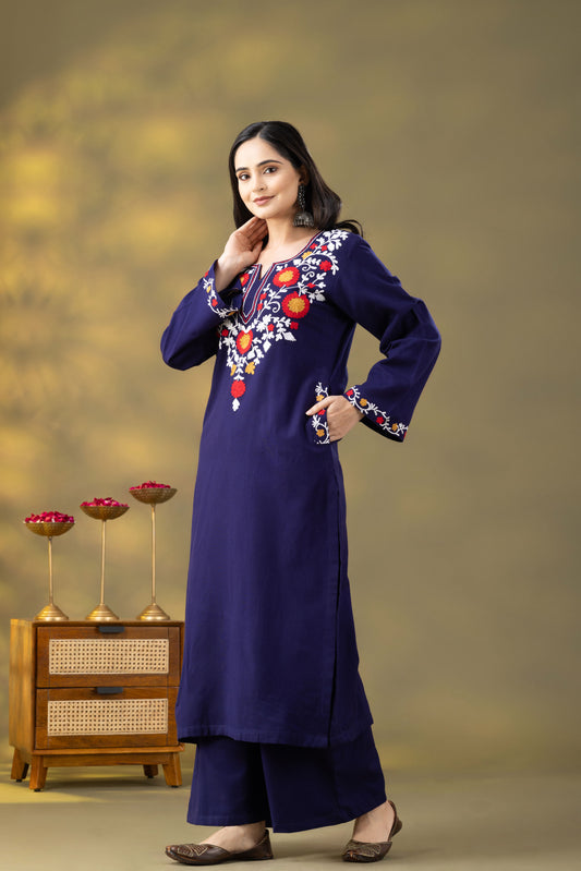 Utsaah Navy Woolen Multi Embroidery Kurta Set