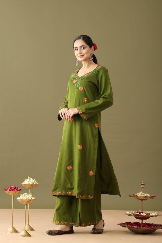 Utsaah Pea Green Aari Embroidery Kurta Set