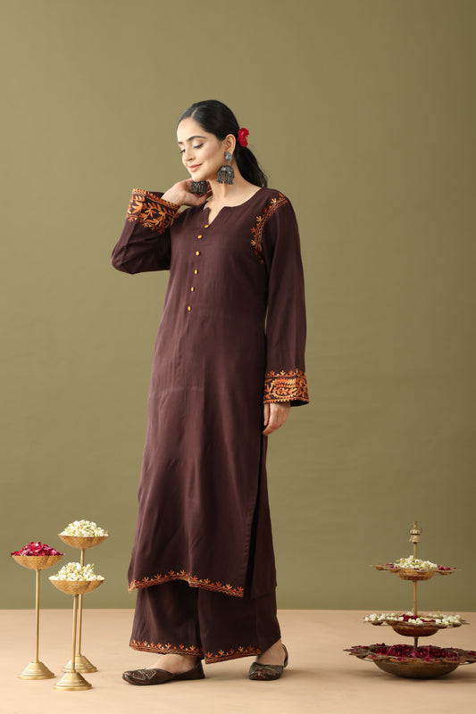 Utsaah Wine Woolen Aari Embroidery Kurta Set